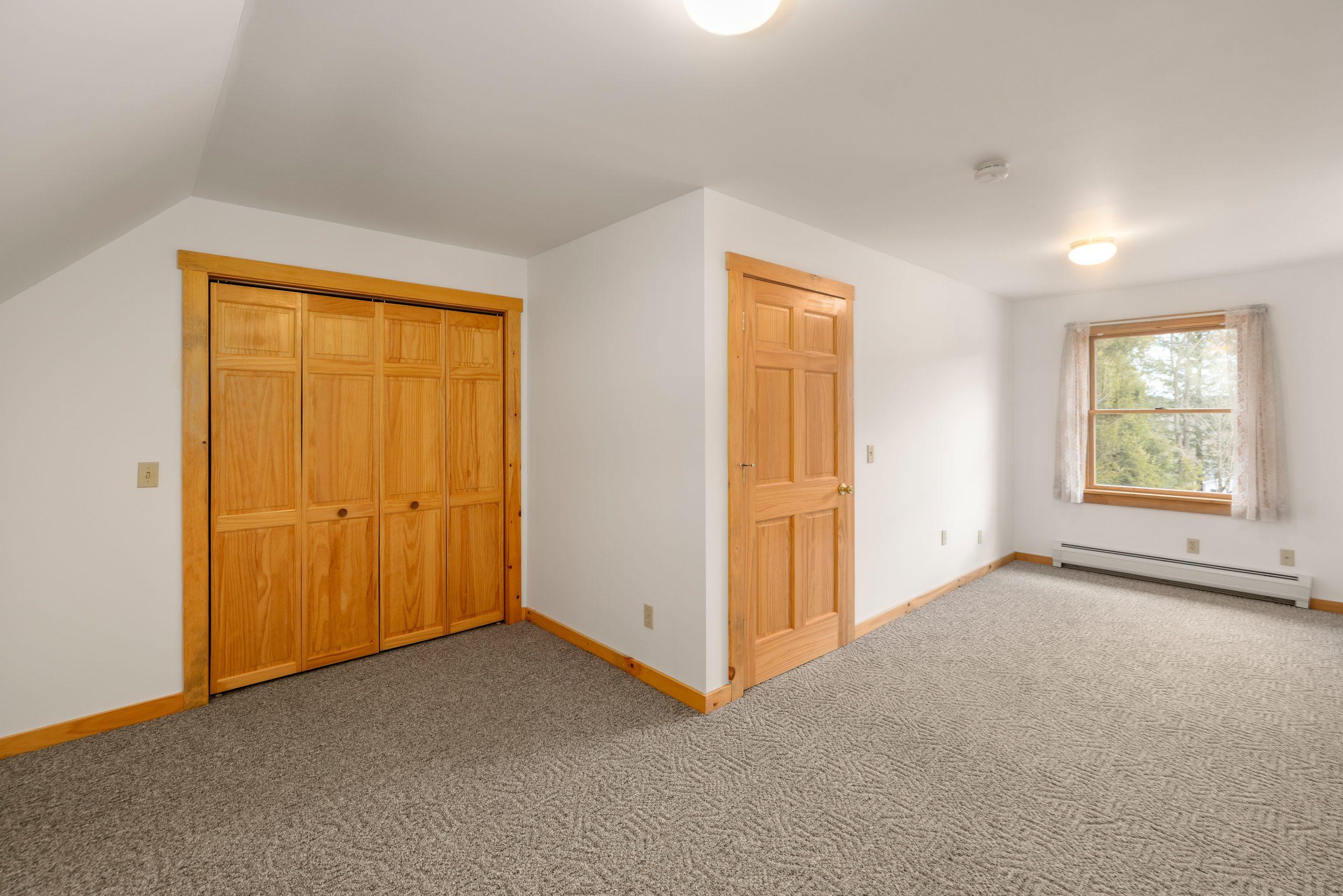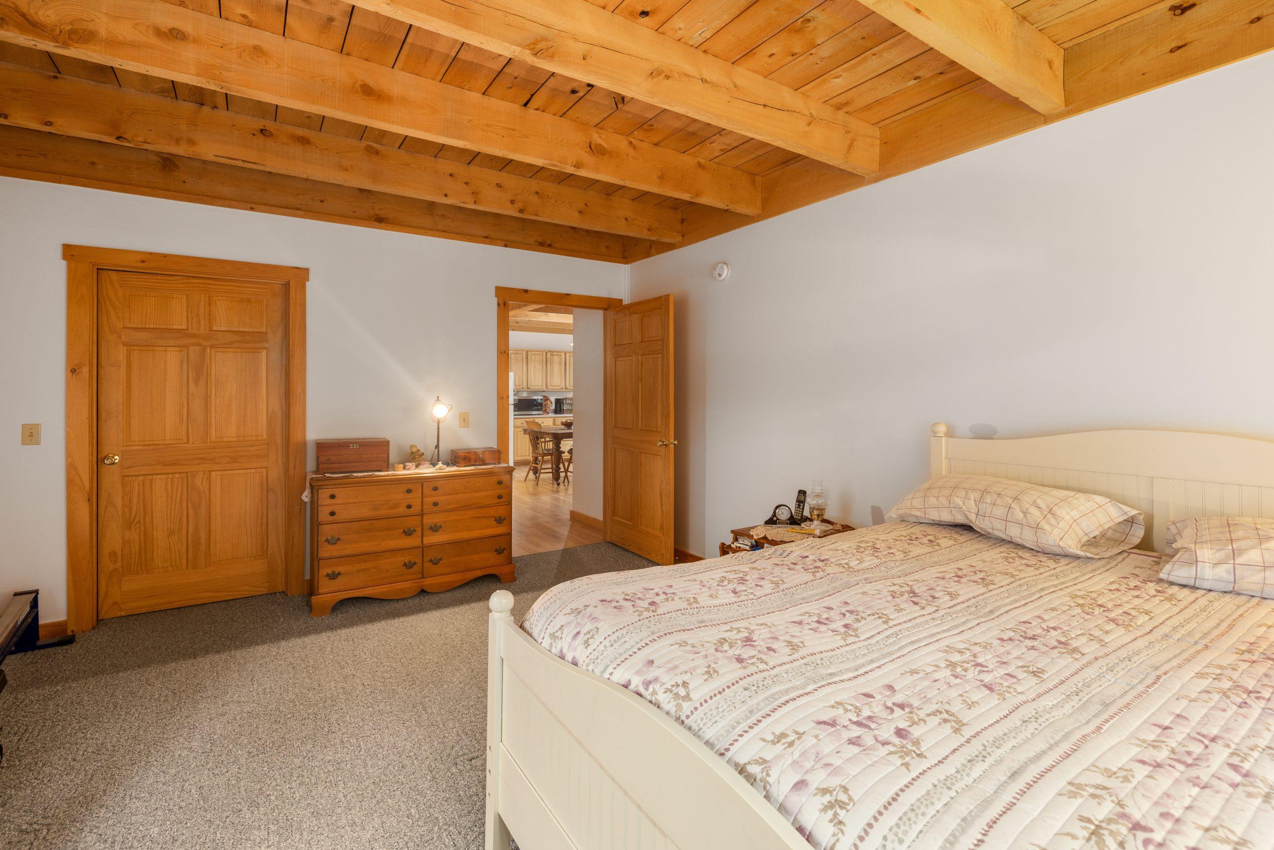 Contemporary cape offering spacious living spaces plus two bonus/storage/hobby rooms. Natural woodwork with high exposed wooden ceiling beams in the living areas on the main level. Large windows are through out this home bringing the outdoors into view. Additionally all rooms have six panel solid wood doors and natural woodwork.16.5′ x 13′ bedroom on main level with walk-in closet. Expansive upstairs left bedroom offers two closets plus one of the bonus rooms. Future family/office or hobby room is off the third bedroom. Check out the granite hearth for your future stove in the living room. 3/4 bath on main level with laundry hookups, handicapped toilet and shower. Your feet will welcome the radiant heat throughout the main level which includes the garage on a separate thermostat; baseboard heat for the upstairs rooms.